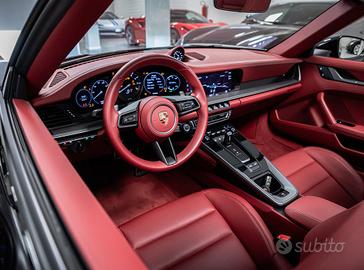 [Cod: 1089471-806] [Veicolo: 1_TARGACG77] Prezzo Gruppo Carmeli: 173.900,00 € Con Promo Gruppo Carmeli: 169.900,00 € (offerta valida con sottoscrizione dei servizi finanziari e assicurativi Gruppo Carmeli, escluso gli oneri finanziari) PORSCHE 911 Targa 4S-ASSE STERZANTE-SCARICO SPORT-PACK SPORT DESIGN IMMATRICOLAZIONE: 01-05-2023 KW: 331 CV: 450 KM: 7.500 COLORE ESTERNO: Nero Jet Metallizzato INTERNI: Interno pelle rosso bordeaux OPTIONAL: - [0N5] Asse posteriore sterzante - [0P8] Impianto di scarico sportivo (terminali in colore argento) - [1N3] Servosterzo Plus - [1NV] Cerchi verniciati in nero (lucido) - [1P7] Porsche Dynamic Chassis Control Sport (PDCC ) - [2D1] Pacchetto SportDesign - [3J7] Stemma Porsche sui poggiatesta - [46M] Cerchi da 20 / 21 pollici Carrera Exclusive Design - [4GP] Fascia grigia sulla parte superiore del parabrezza - [5XH] Alette parasole in pelle - [6XV] Specchietti esterni ripiegabili elettricamente inclusa illuminazione di cortesia - [7Y1] Lane Change Assist - [8IU] Fari principali a LED Matrix incl.Porsche Dynamic Light System Plus (PDLS Plus) - [8LH] Pacchetto Sport Chrono incl. interruttore Mode, App Porsche Track Precision e display della temperatura pneumatici - [8T3] Adaptive cruise control - [FI6] Cinture di sicurezza rosso Bordeaux - [P14] Specchi retrovisori esterni ed interno con antiabbagliamento automatico e sensore pioggia integrato - [QE1] Pacchetto storage - [VR4] Minigonne laterali SportDesign - [VT2] Listelli sottoporta in alluminio spazzolato argento scuro, illuminati - [2T] Nero Jet - [LU] Interno pelle rosso bordeaux VETTURA UFFICIALE PORSCHE ITALIA – IVA ESPOSTA PARZIALE 60/40 – TAGLIANDI UFFICIALI PORSCHE – UNICOPROPRIETARIO Equipaggiamenti di...[Cod: 1089471-806] [Veicolo: 1_TARGACG77]