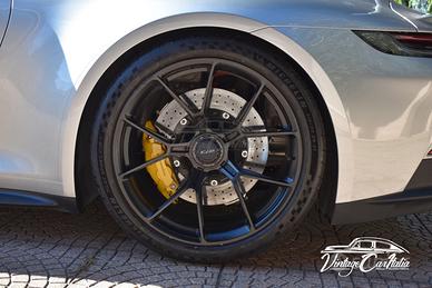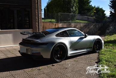 Nuova versione della famiglia delle 911, questa 992 GT3 è stata consegnata nel 2023 nella superba colorazione Argento GT Metal con un azzeccatissimo abbinamento con finiture di colore Giallo e Alcantara.