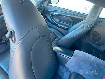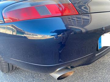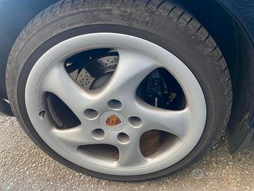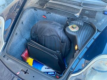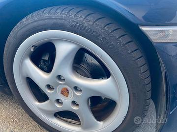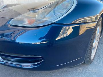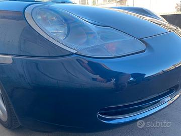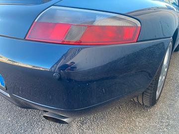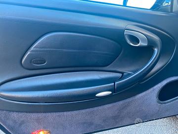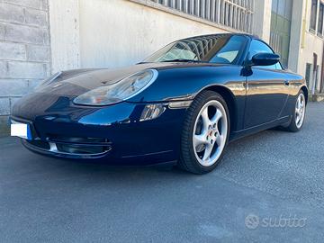 Porsche 996 Carrera 2 Cabrio 911 cambio automatico Tiptronic S a 5 rapporti con possibilità di cambiata manuale tramite comandi al volante. 3.4 litri boxer 6 cilindri (300 CV) Prima immatricolazione in Germania il 31.3.1999 ed importata in Italia nel 2021. Tagliandi documentati fino al 2022. Buone condizioni, auto revisionata e pronta all'uso Dotata di CRS certificato di rilevanza storica ASI, gode quindi dell'esenzione del bollo in Lombardia e dell'assicurazione ridotta. Colore blu interni in pelle blu scuro.