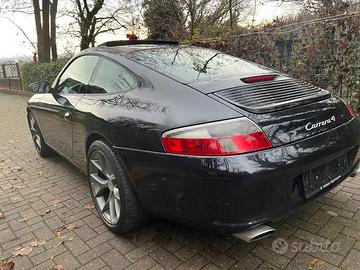 Splendida ed introvabile Porsche 911 nella versione 996 Carrera 4 seconda generazione con motore 3.6 L e 320 hp ! Vettura con due proprietari nata italiana e poi Germania e adesso da noi riportata a casa ! Versione Total Black tutta nera con interni in pelle soffice nera estesa a portiere e cruscotto con un ottimo pedigree con carnet service dell epoca e fatture in originale! Moltissimi lavori eseguito negli anni rendono questo bolide oggi ancora in Condizioni davvero ottimali ! Tetto apribile ! Scarico in acciaio con sound ! 4x4 con cambio automatico Tiptronic S con paddles al volante ! La vettura verrà da noi certificata ASI con CRS a libretto in modo da renderla esente dal pagamento del bollo per le fortunate regioni italiane che lo applicano e comunque scontato al 50 %