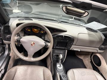 Vendo Porsche Boxster 986, motore 2700 con 228 cavalli, anno 2003, auto storica iscritta ASI con CRS (riduzione bollo e assicurazione). Colore grigio seal metallizzato con interni in pelle grigia, cambio automatico tiptronic, PCM, cappotta in ottime condizioni con lunotto in vetro, tagliando generale pre consegna. Importo finanziabile, Si riceve su appuntamento, Si valutano permute (a disposizione anche altre youngtimer : Audi tt, cayman, 987, Mercedes slk, cabrio, coupe,...)