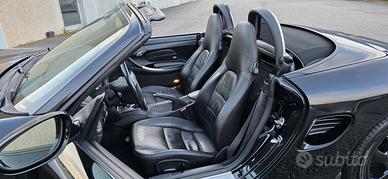 PORSCHE BOXSTER S 3.2 (986) 252 CV - Manuale - Exclusive Manufaktur Quando il designer Grant Larson, sotto la direzione di Harm Lagaay, tracciò le linee della Boxster nei primi anni '90, la direttiva era creare una roadster che attingesse alla mitica 550 Spyder di James Dean, al DNA racing degli anni '50. Oggi la 986 sta vivendo la sua definitiva consacrazione storica: è l'unica generazione di Boxster nata con una propria identità pura, retrò e rivoluzionaria, prima che le serie successive venissero 'normalizzate' come delle baby-911. Proponiamo un introvabile esemplare "Triple Black" (carrozzeria, interni e capote neri), produzione Valmet (eccellenza negli assemblaggi). Un conservato eccezionale: prima vernice, Full Service e abitacolo che profuma ancora di nuovo. REPARTO EXCLUSIVE (Cod. 09991) Auto passata dal programma Sonderwunsch (Desideri Speciali) con una ricca lista di codici "X". Abitacolo maniacale con pelle estesa cucita a mano su elementi solitamente in plastica: bocchette aria, vano portaoggetti, coperture altoparlanti e tunnel centrale. DOTAZIONE: Volante sportivo 3 razze in pelle, Roll-bar verniciato argento a contrasto, Battitacco in acciaio INOX con logo, Fari Litronic (Xeno), sistema PSM, Climatizzatore automatico, Sedili parzialmente elettrici e riscaldatiRadio Porsche Becker CD22 con amplificatore e impianto esteso. CONDIZIONI E AGEVOLAZIONI: Meccanica e carrozzeria in ottimo stato. Ultimo service eseguito circa 2.000 km fa. Capote eccellente, consegnata con lunotto posteriore nuovo. Auto ultraventennale (pronta all'immatricolazione italiana), di sicuro interesse storico e iscrivibile ASI (in base alla regione: esenzione superbollo, bollo ridotto e RCA vintage). Si declina ogni responsabilità per eventuali involontarie incongruenze, non rappresentanti impegno contrattuale.