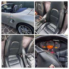 Vendo Boxster (fabbricazione Tedesca-non Finlandese) nel mio garage dal giugno 2015. Lavori eseguiti negli ultimi 10 anni: collettori di scarico sportivi in acciaio AISI 3 in 1 per bancata, filtro aria BMC, frizione, debimetro, pompa acqua, cuscinetto IMS (messo in sicurezza con il Kit apposito), alternatore ricondizionato, cinghia servizi assetto sportivo. Appena installati (Maggio) cerchi Rennen Mak (cerchi Turbo look con distanziali dedicati compresi nel prezzo-valore euro 1.000); radio Sony Din2 (Aprile) con Android e Apple Car, distanziali (Luglio) e batteria Varta E11 (Ottobre). Gomme Michelin al 60%. Eseguito a marzo ultimo tagliando con oli e filtri motore e cambio più abitacolo. Stacca batteria. Pelle totale. Capotte perfettamente funzionante con qualche segno di usura. Carrozzeria senza botte con qualche piccolo segno. Nessuna anomalia sensoristica. PREZZO leggermente Trattabile.