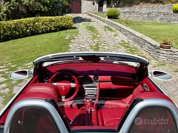 Porsche Boxster 987 manuale del 2008 con 76000 km, bianca interni in pelle rosso cartier con loghi Porsche impressi nei poggiatesta, pacchetto pelle esteso a portiere e cruscotto, cerchi carrera da 18 pollici, pneumatici bridgestone potenza montati a gennaio 2026, book service, ultimo tagliando Porsche Perugia fatto a novembre 2024, revisione valida fino a settembre 2027, bollo pagato fino a gennaio 2027.