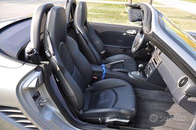 Ciao, sono Giorgio di PGautomotive.it ho ispezionato e provato quest'auto. Tutte le informazioni che leggi nella scheda del veicolo sono state da me verificate personalmente. Per qualsiasi altra informazione o per un test drive puoi scrivermi su WhatsApp oppure contattami al - VISIBILE SOLO SU APPUNTAMENTO - Quest'auto ha superato i test di conformità, perciò te la proponiamo con la GARANZIA GUASTI e il SOCCORSO STRADALE valida per 12 mesi in tutta Europa. La Porsche Boxster 987 è una roadster a motore centrale celebrata per il suo equilibrio dinamico superiore, un sound coinvolgente del 6 cilindri boxer (specialmente sopra i 4500 giri/min) e un'ergonomia eccellente che la rende comoda anche nei lunghi viaggi. È considerata una vera Porsche, agile e precisa, in questa versione monta il cambio automatico Tiptronic S a 5 rapporti (comandi al volante) con convertitore di coppia, noto per la sua robustezza. Perfetta sia nella carrozzeria mai incidentata che negli interni in pelle blu traforata in tinta con la capote. Dispone del pacchetto Sport Chrono di pneumatici Michelin Pilot Sport quasi nuovi. Tutti i tagliandi sono stati effettuati rigorosamente presso officine autorizzate Porsche come si evince dal libretto service I proprietari totali sono 2. Per avere una una visione più approfondita e dettagliata della vettura ti consiglio di cercare l’annuncio sul nostro sito PGAUTOMOTIVE.IT