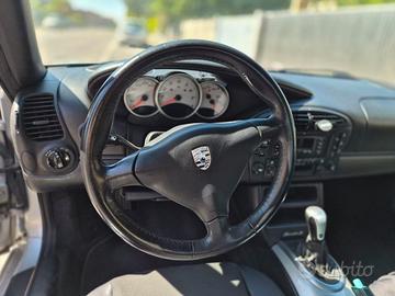 VISIONABILE SU APPUNTAMENTO NELLA SEDE DI GIUSSANO! Porsche Boxster S 3.2 (986) - 1999 Non e' per tutti. E' per chi capisce. C'e' qualcosa nelle Porsche di fine anni '90 che le moderne hanno perso: un equilibrio autentico, una guida pura, senza filtri. Questa Boxster S 3.2 del 1999 e' esattamente questo. Motore centrale, trazione posteriore, cambio preciso... e quella sensazione analogica che oggi e' diventata rara. Non e' l'auto da vetrina perfetta e immacolata. E' un'auto vissuta nel modo giusto: guidata, apprezzata, e soprattutto mantenuta con grande attenzione. Il flat-six 3.2 spinge con carattere, il sound e' quello vero, senza artifici. Telaio bilanciato e sterzo diretto: ogni curva diventa un motivo per uscire a guidare. Iscritta ASI con targa oro e certificazione FIVA, e' ufficialmente riconosciuta come auto storica in tutta Europa — un valore aggiunto concreto, non solo per passione ma anche per prospettiva. Negli anni sono stati eseguiti diversi lavori di restauro e manutenzione: sospensioni nuove, impianto frenante rifatto, batteria e bobine sostituite, oltre al cambio completo di tutti i liquidi. Un'auto pronta, curata, senza interventi da affrontare. A completare il tutto, due set di cerchi originali Porsche: 18" e 17", per adattarla a ogni stile di guida. Ideale per chi cerca un ingresso autentico nel mondo Porsche, o per chi vuole una sportiva leggera e coinvolgente senza spendere cifre fuori scala. Sta iniziando a essere riconosciuta anche come youngtimer di grande interesse. Non e' un'auto per chi cerca solo comfort o status. E' per chi vuole guidare davvero. Se sai cosa stai guardando, non serve dire altro. Accessori di serie: - Sedili anteriori elettrici - Climatizzatore automatico - Personalizzazioni linea e stile - Antifurto immobilizer - Chiusura centralizzata - Cerchi da 17 - Spoiler posteriore - Specchietti retrovisori elettrici - riscaldabili - Interni in alcantara - Airbag passeggero - Airbag guida - Alzacr Offerta