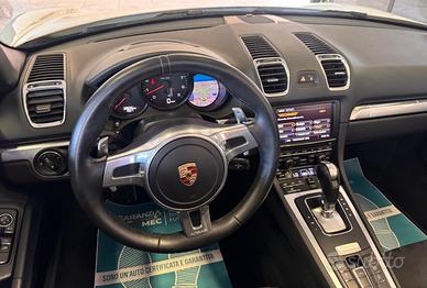 PORSCHE BOXSTER 2.7 PDK AUTOMATICA Anno immatricolazione: 03/2014 Km: 39.000 (reali e certificati) Motore: 2.706cc 195kw / 265cv Alimentazione: Benzina Euro 5B ️ Cambio: Automatico e sequenziale con Paddle al volante ️ Manutenzione e condizioni: Tagliandi Porsche regolari e certificati da libretto service Lucidatura completa dei cerchi appena eseguita Auto sempre custodita in box Capotte in condizioni perfette Optional e dotazioni principali: Cerchi in lega da 19” con pneumatici estivi al 90% Pastiglie freno 90% Luci di posizione LED Fari Bi-Xeno Clima digitale bizona Scarico sportivo Volante sportivo Tasto Sport Tasto Scarico Sedili riscaldati Sedili regolabili elettricamente Interni in pelle e Alcantara Bracciolo Radio, Bluetooth, Vivavoce, USB, Comandi al volante, Touch Screen, Navigatore Luci automatiche Specchietti regolabili elettricamente SERVIZI OFFERTI: Consegna a domicilio in tutta Italia Finanziamento disponibile anche per l’intero importo Possibilità di permuta con Auto, Moto o Furgoni ️ Polizza assicurativa disponibile sulle vetture WhatsApp H24: Consigliamo ai gentili clienti di contattarci per verificare la disponibilità della vettura. ️ Eventuali imprecisioni dovute alla non uniformità dei dati pubblicati dai diversi portali non rappresentano in alcun modo un impegno contrattuale.