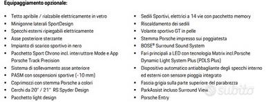 Vendo porsche carrera 4s 992.1 del 2020 con 35000 chilometri certificati porsche. Auto perfetta in ogni sua parte full optional Porsche approved valido fino a ottobre 2026 In allegato foto la lista accessori. Ultimo tagliando porsche ottobre 2025. Per qualsiasi info 3314243189. Astenersi sognatori o perditempo.