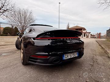 Dati della vettura TUTTA CERTIFICATA PORSCHE APPENA FATTO IL TAGLIANDO + PORSCHE APPROVED PREZZO DA CAPOGIRO 139.900 Porsche Carrera S Full Optional IVA ESPOSTA ANNO 2022 Alimentazione: BENZINA Chilometri: 13.000km Potenza: 450 CV Trazione / Posteriore Cambio: Automatico PDK Equipaggiamento opzionale: * Tetto apribile / rialzabile elettricamente in vetro * Specchietti esterni ripiegabili elettricamente * Pacchetto Sport Chrono incl. interruttore Mode, App Porsche Track Precision e display della temperatura pneumatici Terminali di scarico sportivi neri + scarico sportivo * Servosterzo Plus * Sistema di sollevamento asse anteriore * Cerchi verniciati in oro satinato * Sigillante per pneumatici e compressore d'aria elettrico Nero Jet metallizzato Interni in pelle nera * Cerchi da 20 / 21 pollici Carrera Exclusive Design * Pacchetto light design * Cinture di sicurezza in rosso (G1) * Stemma Porsche sui poggiatesta * Volante sportivo GT multifunzione in Race-Tex * BOSE Surround Sound System * Fari principali a LED con tecnologia Matrix incl.Porsche Dynamic Light System Plus (PDLS Plus) * Vetratura Privacy * ParkAssist (anteriore e posteriore) inclusa telecamera