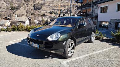 Esemplare di Cayenne da collezione in configurazione molto rara e bellissima Dark Olive Metallic Green con interni Pelle sabbia e inserti mogano in condizioni ottime.