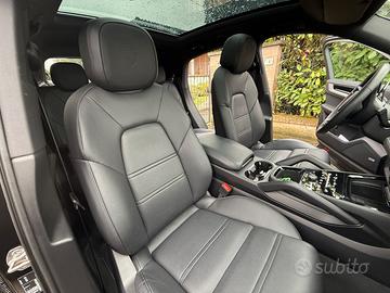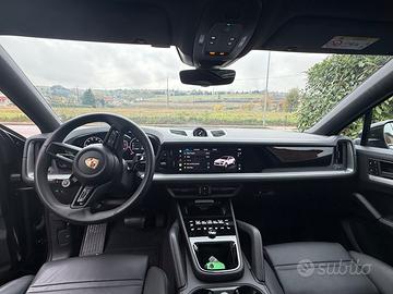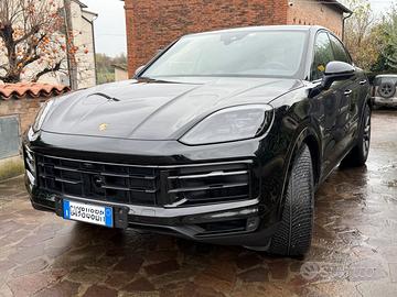 Porsche Cayenne Coupè 3.0 V6, cilindrata 2.995 cc, potenza 260 kW(353 cv), coppia max 500 Nm, immatricolata Settembre 2024, 13.000 km, set di pneumatici estivi ed invernali, nero cromate metallizzato, interni in pelle liscia nera, cerchi da 21 pollici exclusive design in grigio Vesuvio, bulloni antifurto per ruote, sedili comfort a 14 vie con pacchetto memory, ventilazione sedili anteriori, pacchetto esterno lucido, luci di cortesia led sulle porte con logo Porsche, tetto panoramico, sospensioni pneumatiche adattative con Porsche Active Suspension Management, terminali di scarico argento, servosterzo Plus, asse posteriore sterzante, serbatoio da 90 litri, vetri privacy, scudo Porsche in rilievo sui poggiatesta sedili anteriori, lane change assist, park assist con surround view, Porsche Innodrive con Active Lane Keeping, Porsche Entry, illuminazione ambientale