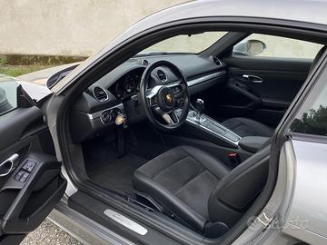 Porsche Cayman718 Colore Argento Unico proprietario Macchina ITALIANA 14000 Km Tagliandi certificati Cerchi da 20” Pacchetto CRONOSPORT Cambio PDK scritte CAYMAN 718 sottoporta Interni pelle/alcantara