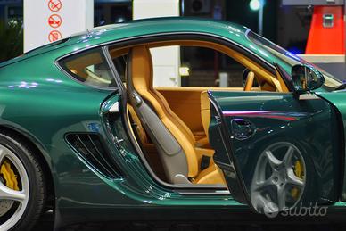 Cayman S 987 mk2 3.4cc 320cv Auto proveniente da collezione privata, primo proprietario Centro Porsche di Monaco, configurata come auto di presentazione. Colore su ordinazione PTS British racing green metallic,Freni carboceramici PPCB, Differenziale autobloccante LSD e Sport Chrono sono tra i principali optional. Rarissima con cambio Manuale 6 marce. Vettura unica con quasi ogni optional disponibile a listino. Auto in condizioni eccelse, sempre riposta in box climatizzato , interni praticamente intonsi senza alcun difetto altrettanto per la carrozzeria. Mai riverniciata Tutta prima vernice, paraurti inclusi. 89,000km originali e certificati, NO FUORI GIRI CAR VERTICAL DISPONIBILE La posseggo da 3 anni, utilizzata poco ma regolarmente. Solamente tagliandi porsche, dal primo all’ultimo. Tagliandata ogni 5,000km/1 anno con mobil1 specifico. Ho provveduto ad effettuare alcune modifiche per renderla dinamicamente divertente ed efficace: Assetto regolabile della KW ST XA Barre stabilizzatrici H&R regolabili Avantreno completamente su Powerflex Duomi su uniball regolabili ricavati dal pieno Collettori di scarico decat equal lenght marca SOUL importati dall’america (3900euro) E altre varie migliorie.. Dispongo di tutti i pezzi originali. La macchina non è mai stata utilizzata in pista, solamente uscite domenicali. i numeri ufficiali riportano solamente 832 esemplari di cayman S 987.2 con cambio manuale Prodotti in tutto il mondo. Se si aggiunge anche il colore su ordinazione PTS, i freni carboceramici ed il differenziale LSD ci si puo fare un idea sulla rarità del mezzo. Non vendo per necessità, vi invito a rispettare la richiesta e di non farmi perdere tempo inutilmente. Non scambio e non permuto. Resto a disposizione per ogni chiarimento. L’auto si trova a Palermo, sicilia.