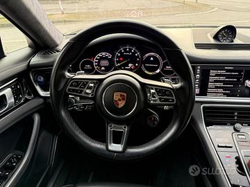 C.R. TRADING GROUP SRL Porsche Panamera sport turismo turbo s e-hybrid cilindrata 4.0 V8 che eroga 550cv. con il motore termico sommato al motore elettrico eroga 680cv. complessivi. Auto elegante ma allo stesso tempo sportiva. Motore 4.0 V8 che regala un sound unico ma con la possibilità di passarla in elettrico e rendere il suono totalmente assente. IMPIANTO FRENANTE CARBOCERAMICO PER VERI INTENDITORI. Doppio treno di gomme e cerchi da 21”. Che dire della guida sedili avvolgenti regolabili elettricamente riscaldati e ventilati sia anteriori che posteriori che danno un confort unico. Auto full optional:doppio tetto in vetro anteriore apribile posteriore fisso,cielo in alcantara,fari allo xeno full led adattivi,pacchetto chrono sport (è composto da un cronometro analogico e digitale sul cruscotto,un indicatore di performance nella strumentazione dove si può scegliere la modalità di guida tra elettrico,hybrid,sport e sport plus.Premendo il tasto centrale si entra nella modalità SPORT REPONSE dove il motore eroga i 20s della potenza massima.Ovviamente cambio automatico + F1 al volante per una guida più sportiva,vetri privacy,impianto frenante carboceramico,sedili in pelle totale elettrici riscaldati e ventilati sia anteriori che posteriori,clima con strumentazione per regolazione anche posteriore,telecamera 360° per parcheggio assistito,navigatore, Bluetooth,ecc. Possibilità finanziamento. Riceviamo clienti solo con appuntamento.