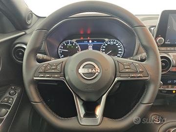 Sensori di parcheggio anteriori e posteriori - Telecamera posteriore - Apple Car Play / Android auto - Ruotino di scorta - Mantenitore di corsia - Frenata assistita - Specchi laterali richiudibili elettricamente - Cerchi in lega bruniti da 17" Climatizzatore automatico, Consolle centrale con doppio portabicchieri, Illuminazione bagagliaio, Sedile guidatore regolabile in altezza, Sedili sportivi Monoform, Volante e pomello del cambio in pelle, Volante regolabile in altezza e profondità, Bracciolo centrale anteriore con portaoggetti, Sedili posteriori abbattibili 60/40, Volante multifunzione (Audio + Tel + Cruise Control + Limitatore di velocità), 3-Blink Turn Signal, Bagagliaio con doppio fondo modulare, Gancio appendiabiti sul montante porta posteriore (lato guidatore), Intelligent Ride Control, Intelligent Trace Control, NissanConnect Services, Poggia ginocchia, Sensore Temperatura Esterna, Vehicle dynamic control, Intelligent key, Antenna Shark, Fissaggi Isofix (Sedili posteriori), Alette parasole con specchietto di cortesia (guidatore e passeggero), Sistema di allarme perimetrale, Touchscreen da 8" con Apple CarPlay e Android Auto e comandi vocali, Display di assistenza avanzata alla guida TFT da 7", Radio DAB con 6 Altoparlanti, Cerchi in lega da 17" Blade, Porta USB posteriore (carica solo a 2,4 A), Bluetooth + USB + AUX + 12V, Stop Start System, Maniglie in tinta carrozzeria, Specchietti regolabili elettricamente con indicatori di direzione integrati, Specchietti ripiegabili e riscaldabili elettricamente, Spoiler posteriore al tetto.