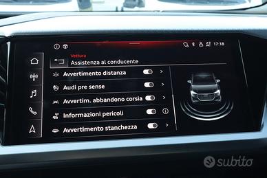Da solo Euro 449 al mese finanziabile! Iva deducibile! Anche guidabile da neopatentati! Garanzia di Audi fino 06/2026 Autonomia ca. 559 km Active Cruis Control Matrix - Fari a LED Sedili anteriori sportivi con supporto lombare Audi Virtual Cockpit – tachimetro digitale Cerchi in lega 20″ Riscaldamento e raffreddamento ausiliari Apple Carplay und Android Auto Volante sportivo Camera retromarcia con sensori di parcheggio Audi Sound System Pacchetto lucido Sedili anteriori riscaldabili Keyless Pacchetto di assisenti Plus – avviso di corsia, riconoscimento dei segnali stradali, Audi pre sense front, assistente di evasione e svolta, rilevamento della sonnolenza e della distrazione Sistema di navigazione Plus Wireless Charging per Smartphone Audi Drive Select – diverse modulita di guida Portellone posteriore elettrico Pacchetto - luci d`ambiente Vetri posteriori oscurati Incluso 12 mesi di garanzia usato Salvo errori e vendita Qualtia e sicurezza Chilometri certificati! Valutiamo anche la vostra permuta Finanziamenti su richiesta Passaggi immediati Salvo errori e vendita