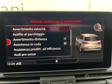 Equipaggiamento in dotazione : pacchetto sportivo Sline interno ed esterno, cruise control adattivo, retrovisore auto anabbagliante, audi pre sense, freno a mano elettronico, illuminazione interna a led, ruota di scorta, bluetooth, specchietti riscaldabili e ripiegabili elettricamente, fari led ant e post, luci diurne a led, volante multifunzione a tre razze, mancorrenti, bracciolo, navigatore, sistema di ausilio al parcheggio plus (ant e post), audi virtual cockpit, cerchi da 20, vetri scuri, audi pre sense, sensore luci e pioggia, clima automatico a tre zone, bagagliaio elettrico.