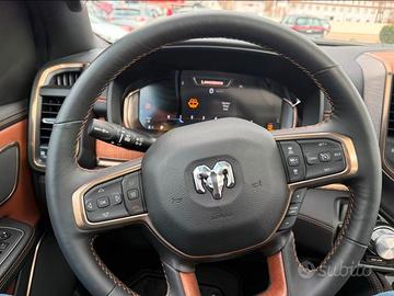 Modiche e accessori extra casa madre• Pneumatici 305/45 R22 regolarmente omologati• Gancio di traino• Impianto GPL PRINS con bombola sottoscocca• Sistema di scarico con sistema cut-out con telecomando• Gancio traino• Pedane elettriche• Allestimento Full Versione LONGHORN con chrome appereance package• Colore: NERO METALLIZZATO• CrewCab (Cabina estesa la più richiesta e comoda per i passeggeri)• ALP Package • Full-Speed Forward Collision Warning Plus: sistema anti-collisione• Electronic Stability Control ESC controllo di stabilità• Ready Alert Braking RAB avvisatore di frenata e frenata assistita• Electronic Roll Mitigation ERM controllo anti-rollio elettronico delle sospensioni• Vera pelle con piping della versione LIMITD• Trailer Sway Control TSC gestione elettronica del traino• ParkView Rear Back-Up Camera quad: 4 telecamere• Remote start system: accensione a distanza del motore• Remote tailgate release: apertura radiocomanda della sponda post.• Multi-functional TailgateSommario specifiche tecniche• Motore 5.7 Hemi (395HP - 400 CV)• Cambio automatico Tipo 8HP - 8 rapporti comando round touch• 4WD - 4WDAuto + ridotte• 4 freni a disco con sistema avanzato ABS• Autocarro 5 posti N1• Navigatore Europeo Allestimento Full versione LONGHORN * PREZZO FINALE PIÙ IVA IMPERAMMORTAMENTO DEL 140%