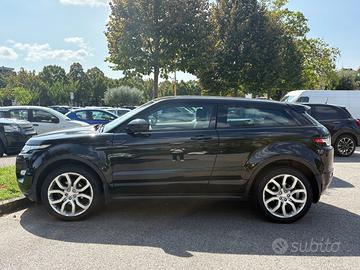 Vendo Range Rover Evoque Coupé Dynamic 2.2 SD4 190 CV del 2014, nera metallizzata, con interni in pelle totale, impianto audio Meridian da 825 Watt, cerchi da 20” e sospensioni magnetiche adattive.