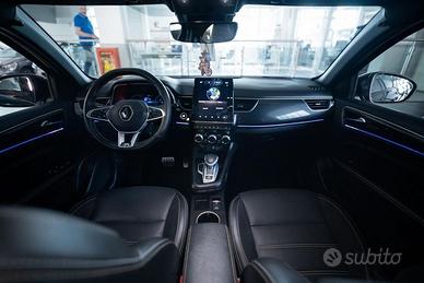 2 prese USB + 1 AUX nella prima fila - 2 prese USB e bocchette d'aria nella seconda fila - ABS - Accensione automatica dei fari e tergicristalli con sensore di pioggia - Airbag frontale conducente - Airbag frontale passeggero (Disattivabile) - Airbag laterali a tendina anteriori - Airbag laterali a tendina posteriori - Airbag laterali per la protezione del torace - Alzacristalli anteriori e posteriori elettrici impulsionali - Armonia interna in nero titanio - Assistenza al mantenimento della corsia (Lane Keep Assist) - Assistenza all'uscita dal parcheggio (Rear Cross Traffic Alert) - Assistenza alla frenata di emergenza AFU - Assistenza alla partenza in salita (Hill Start Assist) - Avviso attraversamento linea di corsia (Lane Departure Warning) - Avviso distanza di sicurezza (Distance Warning) - Badge laterali dorati warm titanium con adesivo laterale E-TECH - Battitacco specifico con griffe E-Tech Engineered - Black Logo posteriore e anteriore con scritta posteriore Arkana Nero Lucido - Bracciolo anteriore scorrevole con compartimento e 2 portabicchieri - Caricatore Smartphone a induzione - Cerchi in lega 18" Silverstone con accento dorato warm titanium - Chiamata d'emergenza - Climatizzatore automatico - Commutazione automatica degli abbaglianti / anabbaglianti - Controllo elettronico della stabilità ESC (ESP) con funzione antislittamento ASR - Cruise control adattivo con Stop&Go automatico - Digital Driver Display 10'' - Easy Access System II (apertura/chiusura all'avvicinamento) - Easy Park Assist (parcheggio a mani libere) - Eco Drive - Fari anteriori e firma luminosa posteriore Full led - Fari design con firma C-Shape all'anteriore e effetto 3D al posteriore - Frenata d'emergenza attiva (AEBS) con riconoscimento pedoni e ciclisti - Freno di stazionamento elettrico con funzione auto-hold - Highway and Traffic Jam Companion (guida
