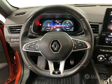 Altre opzioni: Accensione automatica dei fari e tergicristalli con sensore di pioggia;Alert sonoro per i pedoni;Ambient Lighting a LED;Armonia interna in nero titanio;Assistenza al mantenimento della corsia (Lane Keep Assist);Assistenza alluscita dal parcheggio (Rear Cross Traffic Alert);Avviso attraversamento linea di corsia (Lane Departure Warning);Avviso distanza di sicurezza (Distance Warning);Badge laterali dorati warm titanium con adesivo laterale E-TECH;Battitacco specifico con griffe E-Tech Engineered;Black Logo posteriore e anteriore con scritta posteriore Arkana Nero Lucido;Cambio e-shifter;Caricatore Smartphone a induzione;Cerchi in lega 18" Silverstone con accento dorato warm titanium;Chiamata demergenza;Commutazione automatica degli abbaglianti / anabbaglianti;Design esterno esclusivo E-Tech Engineered;Design interno esclusivo E-tech Engineered;Digital Driver Display 10";Doppiofondo bagagliaio con separatore removibile;Easy Access System II (apertura/chiusura allavvicinamento);Easy Park Assist (parcheggio a mani libere);Eco Drive;Fari design con firma C-Shape allanteriore e effetto 3D al posteriore;Frenata demergenza attiva (AEBS) con riconoscimento pedoni e ciclisti;Freno di stazionamento elettrico con funzione auto-hold;Kit riparazione pneumatici con scatola attrezzi;Modanature di protezione laterali con profilo dorato warm titanium;Paraurti anteriore con lama aerodinamica F1 dorata warm titanium;Parking camera posteriore;Privacy Glass (Vetri laterali posteriori e lunotto oscurati);Renault MULTI-SENSE