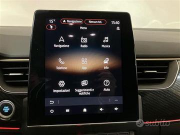 Altre opzioni: Accensione automatica dei fari e tergicristalli con sensore di pioggia;Alert sonoro per i pedoni;Ambient Lighting a LED;Armonia interna in nero titanio;Assistenza al mantenimento della corsia (Lane Keep Assist);Assistenza alluscita dal parcheggio (Rear Cross Traffic Alert);Avviso attraversamento linea di corsia (Lane Departure Warning);Avviso distanza di sicurezza (Distance Warning);Badge laterali dorati warm titanium con adesivo laterale E-TECH;Battitacco specifico con griffe E-Tech Engineered;Black Logo posteriore e anteriore con scritta posteriore Arkana Nero Lucido;Cambio e-shifter;Caricatore Smartphone a induzione;Cerchi in lega 18" Silverstone con accento dorato warm titanium;Chiamata demergenza;Commutazione automatica degli abbaglianti / anabbaglianti;Design esterno esclusivo E-Tech Engineered;Design interno esclusivo E-tech Engineered;Digital Driver Display 10";Doppiofondo bagagliaio con separatore removibile;Easy Access System II (apertura/chiusura allavvicinamento);Easy Park Assist (parcheggio a mani libere);Eco Drive;Fari design con firma C-Shape allanteriore e effetto 3D al posteriore;Frenata demergenza attiva (AEBS) con riconoscimento pedoni e ciclisti;Freno di stazionamento elettrico con funzione auto-hold;Kit riparazione pneumatici con scatola attrezzi;Modanature di protezione laterali con profilo dorato warm titanium;Paraurti anteriore con lama aerodinamica F1 dorata warm titanium;Parking camera posteriore;Privacy Glass (Vetri laterali posteriori e lunotto oscurati);Renault MULTI-SENSE