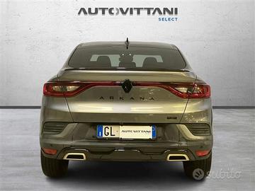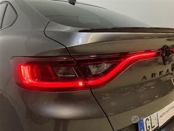 Altre opzioni: Accensione automatica dei fari e tergicristalli con sensore di pioggia;Armonia interna in nero titanio;Assistenza al mantenimento della corsia (Lane Keep Assist);Assistenza alluscita dal parcheggio (Rear Cross Traffic Alert);Avviso attraversamento linea di corsia (Lane Departure Warning);Avviso distanza di sicurezza (Distance Warning);Badge laterali dorati warm titanium con adesivo laterale E-TECH;Battitacco specifico con griffe E-Tech Engineered;Black Logo posteriore e anteriore con scritta posteriore Arkana Nero Lucido;Caricabatteria smartphone a induzione;Cerchi in lega 18" Silverstone con accento dorato warm titanium;Chiamata demergenza;Commutazione automatica degli abbaglianti / anabbaglianti;Digital Driver Display 10;Doppiofondo bagagliaio con separatore removibile (extra spazio sotto il pavimento solo per benzina);Easy Access System II (apertura/chiusura allavvicinamento);Easy Park Assist (parcheggio a mani libere);Eco Drive;Fari design con firma C-Shape allanteriore e effetto 3D al posteriore;Frenata demergenza attiva (AEBS) con riconoscimento pedoni e ciclisti;Freno di stazionamento elettrico con funzione auto-hold;Highway and Traffic Jam Companion (guida autonoma di 2° livello);Kit riparazione pneumatici con scatola attrezzi;Modanature di protezione laterali con profilo dorato warm titanium;Paraurti anteriore con lama aerodinamica F1 dorata warm titanium;Parking camera posteriore;Privacy Glass (Vetri laterali posteriori e lunotto oscurati);Renault MULTI-SENSE con 3 personalizzazioni di guida e