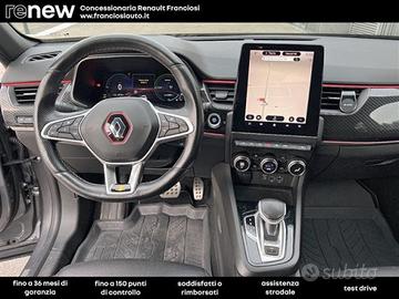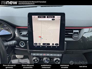 Altre opzioni: Accensione automatica dei fari e tergicristalli con sensore di pioggia;Alert sonoro per i pedoni;Ambient Lighting a LED;Armonia interna in nero titanio;Assistenza al mantenimento della corsia (Lane Keep Assist);Assistenza alluscita dal parcheggio (Rear Cross Traffic Alert);Avviso attraversamento linea di corsia (Lane Departure Warning);Avviso distanza di sicurezza (Distance Warning);Badge laterali dorati warm titanium con adesivo laterale E-TECH;Battitacco specifico con griffe E-Tech Engineered;Black Logo posteriore e anteriore con scritta posteriore Arkana Nero Lucido;Cambio e-shifter;Cerchi in lega 18" Silverstone con accento dorato warm titanium;Chiamata demergenza;Commutazione automatica degli abbaglianti / anabbaglianti;Design esterno esclusivo E-Tech Engineered;Design interno esclusivo E-tech Engineered;Digital Driver Display 10";Doppiofondo bagagliaio con separatore removibile;Easy Access System II (apertura/chiusura allavvicinamento);Easy Park Assist (parcheggio a mani libere);Eco Drive;Fari design con firma C-Shape allanteriore e effetto 3D al posteriore;Frenata demergenza attiva (AEBS) con riconoscimento pedoni e ciclisti;Freno di stazionamento elettrico con funzione auto-hold;Kit riparazione pneumatici con scatola attrezzi;Modanature di protezione laterali con profilo dorato warm titanium;Paraurti anteriore con lama aerodinamica F1 dorata warm titanium;Parking camera posteriore;Privacy Glass (Vetri laterali posteriori e lunotto oscurati);Renault MULTI-SENSE con 3 personalizzazioni di guida;Retrovisore interno