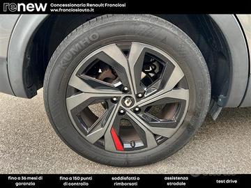 Altre opzioni: Accensione automatica dei fari e tergicristalli con sensore di pioggia;Alert sonoro per i pedoni;Ambient Lighting a LED;Armonia interna in nero titanio;Assistenza al mantenimento della corsia (Lane Keep Assist);Assistenza alluscita dal parcheggio (Rear Cross Traffic Alert);Avviso attraversamento linea di corsia (Lane Departure Warning);Avviso distanza di sicurezza (Distance Warning);Badge laterali dorati warm titanium con adesivo laterale E-TECH;Battitacco specifico con griffe E-Tech Engineered;Black Logo posteriore e anteriore con scritta posteriore Arkana Nero Lucido;Cambio e-shifter;Cerchi in lega 18" Silverstone con accento dorato warm titanium;Chiamata demergenza;Commutazione automatica degli abbaglianti / anabbaglianti;Design esterno esclusivo E-Tech Engineered;Design interno esclusivo E-tech Engineered;Digital Driver Display 10";Doppiofondo bagagliaio con separatore removibile;Easy Access System II (apertura/chiusura allavvicinamento);Easy Park Assist (parcheggio a mani libere);Eco Drive;Fari design con firma C-Shape allanteriore e effetto 3D al posteriore;Frenata demergenza attiva (AEBS) con riconoscimento pedoni e ciclisti;Freno di stazionamento elettrico con funzione auto-hold;Kit riparazione pneumatici con scatola attrezzi;Modanature di protezione laterali con profilo dorato warm titanium;Paraurti anteriore con lama aerodinamica F1 dorata warm titanium;Parking camera posteriore;Privacy Glass (Vetri laterali posteriori e lunotto oscurati);Renault MULTI-SENSE con 3 personalizzazioni di guida;Retrovisore interno