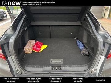 Altre opzioni: Accensione automatica dei fari e tergicristalli con sensore di pioggia;Alert sonoro per i pedoni;Ambient Lighting a LED;Armonia interna in nero titanio;Assistenza al mantenimento della corsia (Lane Keep Assist);Assistenza alluscita dal parcheggio (Rear Cross Traffic Alert);Avviso attraversamento linea di corsia (Lane Departure Warning);Avviso distanza di sicurezza (Distance Warning);Badge laterali dorati warm titanium con adesivo laterale E-TECH;Battitacco specifico con griffe E-Tech Engineered;Black Logo posteriore e anteriore con scritta posteriore Arkana Nero Lucido;Cambio e-shifter;Cerchi in lega 18" Silverstone con accento dorato warm titanium;Chiamata demergenza;Commutazione automatica degli abbaglianti / anabbaglianti;Design esterno esclusivo E-Tech Engineered;Design interno esclusivo E-tech Engineered;Digital Driver Display 10";Doppiofondo bagagliaio con separatore removibile;Easy Access System II (apertura/chiusura allavvicinamento);Easy Park Assist (parcheggio a mani libere);Eco Drive;Fari design con firma C-Shape allanteriore e effetto 3D al posteriore;Frenata demergenza attiva (AEBS) con riconoscimento pedoni e ciclisti;Freno di stazionamento elettrico con funzione auto-hold;Kit riparazione pneumatici con scatola attrezzi;Modanature di protezione laterali con profilo dorato warm titanium;Paraurti anteriore con lama aerodinamica F1 dorata warm titanium;Parking camera posteriore;Privacy Glass (Vetri laterali posteriori e lunotto oscurati);Renault MULTI-SENSE con 3 personalizzazioni di guida;Retrovisore interno