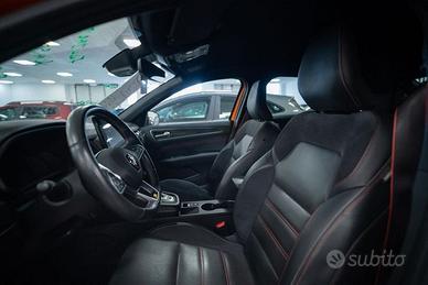 ABS - Accensione automatica dei fari e tergicristalli con sensore di pioggia - Airbag Laterali A Tendina Anteriori E Posteriori - Airbag frontale conducente - Airbag frontale passeggero (Disattivabile) - Airbag laterali per la protezione del torace - Alzacristalli anteriori e posteriori elettrici impulsionali - Armonia interna in nero titanio - Assistenza al mantenimento della corsia (Lane Keep Assist) - Assistenza all'uscita dal parcheggio (Rear Cross Traffic Alert) - Assistenza alla frenata di emergenza AFU - Assistenza alla partenza in salita (Hill Start Assist) - Avviso attraversamento linea di corsia (Lane Departure Warning) - Avviso distanza di sicurezza (Distance Warning) - Badge R.S. line sul parafango anteriore - Battitacco specifico con griffe Renault Sport - Bracciolo anteriore scorrevole con compartimento e 2 portabicchieri, prese 2 USB+1 AUX nella prima fila, prese 2 USB e bocchette d'aria nella seconda fila - Cambio e-shifter - Caricabatteria smartphone a induzione - Cerchi in lega 18'' Silverstone esclusivi R.S. line con accento rosso - Chiamata d'emergenza - Cielo del tetto nero - Climatizzatore automatico - Commutazione automatica degli abbaglianti / anabbaglianti - Controllo elettronico della stabilità ESC (ESP) - Cruise control adattivo con Stop&Go automatico - Digital Driver Display 7" - Easy Access System II (apertura/chiusura all'avvicinamento) - Easy Park Assist (parcheggio a mani libere) - Eco Drive - Fari Full LED anteriori e posteriori - Fari design con firma C-Shape all'anteriore e effetto 3D al posteriore - Frenata d'emergenza attiva (AEBS) con riconoscimento pedoni e ciclisti - Freno di stazionamento elettrico con funzione auto-hold - Funzione antislittamento ASR - Impunture rosse sui pannelli delle porte e sul bracciolo centrale - Kit riparazione pneumatici con scatola attrezzi - Modanature di protezione