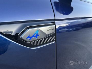 2 prese USB + 1 AUX nella 1a fila - 2 prese USB e bocchette d'aria nella seconda fila - ABS con assistenza alla frenata d'emergenza AFU - Accensione automatica dei fari e tergicristalli con sensore di pioggia - Active driver assist - Airbag frontale conducente e passeggero (disattivabile) - Airbag laterali a tendina anteriori e posteriori - Alert sonoro per i pedoni - Alzacristalli anteriori e posteriori elettrici impulsionali - Armonia interna Nero Titanio - Assistenza al mantenimento della corsia (Lane Keep Assist) - Assistenza all'uscita dal parcheggio (Rear Cross Traffic Alert) - Assistenza alla partenza in salita - Avviso attraversamento linea di corsia (Lane Departure Warning) - Avviso distanza di sicurezza (Distance Warning) - Badge laterali specifici esprit Alpine - Battitacco specifico con griffe esprit Alpine - Bracciolo anteriore scorrevole con compartimento e 2 portabicchieri - Cambio e-Shifter - Caricatore smartphone a induzione - Cerchi in lega da 19" ELIXIR - Cerchi in lega da 19" ELIXIR - Chiamata d'emergenza - Climatizzatore automatico - Commutazione automatica degli abbaglianti/anabbaglianti - Controllo elettronico della stabilità ESC (ESP) con funzione antislittamento ASR - Cruise Control Adattivo (con funzione Stop&Go su cambio automatico) - Cruise Control Adattivo con funzione Stop&Go - Doppio scarico posteriore nero lucido - Doppiofondo bagagliaio con separatore removibile - Easy Access System II (apertura/chiusura all'avvicinamento) - Eco Drive - Fari Full LED Performance - Fari design con firma C-Shape all'anteriore e effetto 3D al posteriore - Frenata d'emergenza attiva (AEBS) con riconoscimento pedoni e ciclisti - Freno di stazionamento elettrico con funzione auto-hold - Highway and Traffic Jam Companion (guida autonoma di 2° livello) - Intelligent Speed Assist (assistenza al superamento dei limiti di velocità) - Kit riparazione