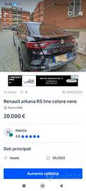 RENAULT ARKANA, RS LINE FULL OPTIONAL, NERA,UNICO PROPRIETARIO, TAGIANDATA A GENNAIO 2026, PERFETTA 66000 KM, ANNO 2022