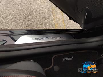 -Climatizzatore manuale, -Volante in pelle specifico R.S. regolabile in altezza e profondità, - Sedile posteriore ribaltabile 1/3 - 2/3 con 2 poggiatesta regolabili in altezza, - No fendinebbia, - Pedaliera e pomello cambio in alluminio, -Fondo del contagiri specifico R.S., -Telaio TROPHY, -Levette cambio automatico EDC al volante, -Easy Access System II (apertura/chiusura porte con sistema Key Less), - Kit riparazione pneumatici, - Montante centrale Nero lucido, - Profili aeratori e cuciture "Blu IRON", -Battitacco con firma R.S, -Chiusura centralizzata, - SMART NAV Evolution con cartografia Italia, -Computer di bordo, - Radio DAB (Digital Audio Broadcasting), -Cerchi in lega 18" Diamantati Black, - Esterni Color Dark Metal, -Maniglie portiere esterno in tinta carrozzeria, - Retrovisori esterni elettrici DARK METAL, -Retrovisori esterni elettrici non in tinta carrozzeria, -Spoiler posteriore R.S -Telaio SPORT, - Logo GT LINE su volante, sellerie e portellone posteriore, -Firma TROPHY sulla modanatura laterale, -Doppio scarico rettangolare integratore nel diffusore posteriore, - Terminale di scarico rettangolare cromato, -Tergicristalli a velocità variabile, - Luci Posteriori LED, -Accensione automatica dei fari e sensore pioggia, -Fari anteriori Full LED Pure Vision con firma luminosa C-Shape, -Leva del freno a mano in pelle con impunture rosse, - Sellerie GT LINE, -Sellerie R.S, -Terzo poggiatesta posteriore, -Airbag frontali, laterali testa-torace, conducente e passeggero, -Controllo pressione pneumatici, -Sistema di partenza "Launch Control", - Sensori di parcheggio posteriori, -R.S. Drive (3 modalità: Normal, Sport e Race) -R.S. VISION, -Privacy Glass, -Alzacristalli anteriori elettrici, impulsionale lato conducente, -Alzacristalli posteriori elettrici, Mappa Europa per R-Link Evolution, Pre-equipaggiamento allarme, Radio BOSE per SMART NAV Evolution, Terminale Akrapovic,