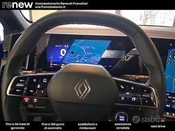 Altre opzioni: Accensione automatica dei fari e tergicristalli con sensore di pioggia;Assistenza al mantenimento della corsia (Lane Keep Assist);Automatic Emergency Braking System (sistema di frenata di emergenza attiva con riconoscimento pedoni;Avviso attraversamento linea di corsia (Lane Departure Warning);Avviso distanza di sicurezza (Distance Warning);Badge specifico atelier alpine;Blind spot warning & intervention (sensore angolo cieco con sistema di controllo attivo);Caricatore Smartphone a induzione;Cavo di ricarica mode 3 con presa di tipo 2 da 7,4kw;Cavo di ricarica per presa domestica di tipo schuko da 2,3kw;Cerchi in lega da 21" chicane;Chiamata demergenza;Commutazione automatica degli abbaglianti / anabbaglianti;Driver Display da 12,3";EcoMode;Emergency Lane Keep Assist (assistenza demergenza al mantenimento della corsia);Freno di stazionamento elettrico con funzione autohold;Hands-free card per apertura / chiusura porte, avviamento motore, animazione benvenuto e arrivederci;Highway and Traffic Jam Companion (guida autonoma di 2° livello);Kit riparazioni pneumatici;Luce di cortesia e proiezione logo Renault;Luci diurne a LED;Lunotto posteriore con sistema di sbrinamento;Multiview 3D Camera 360°;Occupant safety exit (uscita sicura per i passeggeri);Parking Camera;Parti decorative in ardesia naturale;Piastra protezione del bagagliaio in alluminio;Portellone posteriore con apertura hands-free;Predictive hybrid driving assistant;Privacy G