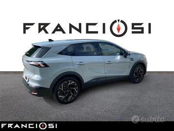 Altre opzioni: 2 luci di lettura a led posteriori;Accensione automatica dei fari;Active emergency brake (frenata di emergenza attiva con riconoscimento pedoni, ciclisti, veicoli e i;Caricatore Smartphone a induzione;Cerchi in lega da 19" diamantati elixir;Cinture di sicurezza con impunture blu;Commutazione automatica abbaglianti / anabbaglianti;Distance Warning (avviso distanza di sicurezza);Doppio fondo bagagliaio;Driver attention alert (avviso stanchezza conducente);Driver display da 10,3";Emergency lane keeping assist;Firma luminosa a forma di semi-losanga;Flying console con cambio e-shifter;Freno di stazionamento elettrico con funzione auto-hold;ISA - intelligent speed assist (riconoscimento segnali stradali);Kit Riparazione Pneumatici;Lama anteriore F1 grigio scisto satinato;Lane Departure Warning (avviso superamento linea);Lane Keep Assist (assistenza al mantenimento della corsia);Logo nouvel R ice black;Luci diurne a LED;Multi-Sense;Parking Camera;Pedaliera in alluminio;Privacy glass;Profili dei finestrini nero lucido;Retrovisore interno fotocromatico Frameless;Sedile conducente e passeggero regolabile in altezza;Sedile posteriore frazionabile 1/3 - 2/3 e scorrevole;Sellerie in tessuto nero jacquard riciclato e tessuto raffinato nero titanio di origine biologica co;sensori pioggia;Shark antenna;Volante regolabile in altezza e profondità