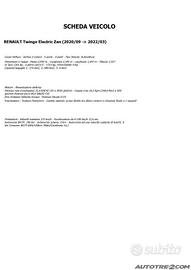 DEK:[1000012286] Renault Twingo Electric (2021): Piccola, Carica e Senza Stress! Hai presente quando cerchi parcheggio per 40 minuti e finisci per voler vendere l'anima al diavolo? Ecco, con questa Twingo Electric da 22kW, il diavolo rimarrà a bocca asciutta e tu sarai già al bar a bere il tuo caffè. Perché lei è "quella giusta": - Gira in un fazzoletto: Ha un raggio di sterzata che sfida le leggi della fisica. Praticamente ruota su se stessa come una ballerina classica. - Zero emissioni, Mille sorrisi: Entri in Area C, ZTL e centri storici come se fossi il sindaco. Niente bollo (per i primi 5 anni) e parcheggi blu gratis in molte città! - Ricarica Fast (per davvero): Grazie al caricatore di bordo da 22kW, recuperi l'80% della carica in circa un’ora mentre fai la spesa o un aperitivo lungo. La Carta d'Identità: Anno 2021 Motore 100% Elettrico Potenza 82 CV (scatta al semaforo che è un piacere!) StatoTenuta con amore (e ricaricata con giudizio) Uso ideale Regina della giungla urbana Nota bene: La macchina è silenziosissima. Ottima per ascoltare i tuoi podcast preferiti, meno ottima se vuoi spaventare i piccioni in piazza. Trazione: Posteriore, gel ideale per manovrabilità e guida in città. Cambio: Automatico monomarcia, nessuna marcia da cambiare manualmente. Prestazioni: Velocità massima: ca. 135 km/h Accelerazione 0-100 km/h attorno ai 12,5 s Batteria e autonomia - Capacità batteria: circa 22 kWh (tecnologia agli ioni di litio) - Autonomia WLTP: - Fino a ~190 km nel ciclo