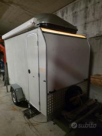 rimorchio cresci in ottime condizioni, dimensioni utili interne 280 x 150 , immatricolato 750 kg , timone ed impianto frenante nuovo alko, gomme al 70% compreso scorta, scadenza revisione 2027, compreso portaoggetti sul tetto e scaffalature interne come da foto, allestito per trasporto n'3 go kart + accessori , se lo desiderate vuoto smonto scaffalature , compreso tenda esterna fiamma
