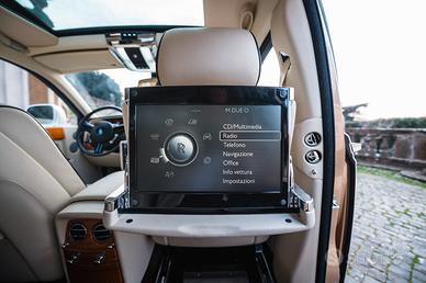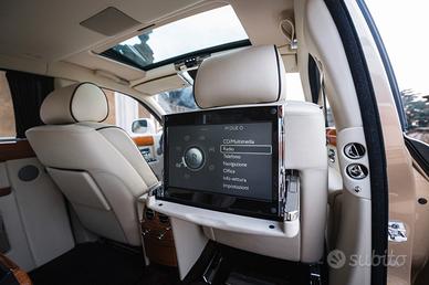 Rolls-RoycePhantom Dati tecnici Condizioni del veicolo prezzo super Veicolo usato, senzaincidenti Categoria Chilometraggio 60,647 chilometri spostamento 6.749 cm³Prestazione 338 kW (460 CV) Tipo di unità motore a combustione Tipo dicarburante Benzina Consumo energetico (combinato) 2 16,8 l/100 km Emissioni diCO₂ (combinate) 2 349 g/km Consumo di carburante 2 16,8 l/100 km (combinato)21,4 l/100 km (città) 12,4 l/100 km (suburbano) Numero di posti 5 Numero diporte 4/5 Cambio Automatico Classe di inquinante Euro6 Prima immatricolazione01/2015 Aria condizionata Climatizzatore automatico a 4 zone Ausilio alparcheggio Telecamera a 360°, anteriore, posteriore Airbag Airbag frontali elaterali Colore (produttore) Oro Colore Oro metallizzato Interno Pelle intera,Altro Carico di supporto 550 chili Peso 2,670 kg cilindro 12 Dimensioni delserbatoio 100 litri attrezzatura · Vetri oscurati con tendine elettriche · ABS· Controllo adattivo della velocità di crociera · sistema di allarme ·Pneumatici per tutte le stagioni · Assistente di guida · Bluetooth ·Alzacristalli elettrico · Portellone elettrico · Specchietti laterali elettrici· Specchietti laterali ripiegabili elettricamente · Regolazione elettrica delsedile · Regolazione elettrica dei sedili con funzione di memoria ·Immobilizzatore elettrico · ESP · Assistente abbaglianti · Trazione posteriore· Isofix · luci di svolta · volante in pelle · Sensore di luce · Volantemultifunzione · sistema di navigazione · fari fendinebbia · Assistente allafrenata di emergenza · Sistema di chiamata di emergenza · Kit padella · RadioDAB · Sensore pioggia · Monitoraggio della pressione dei pneumatici · tettuccioapribile · Servosterzo · Ventilazione del sedile · Sistema audio · Controllovocale