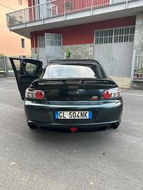 Mazda RX-8 – Full Optional, Unica nel suo genere – Pronta all’uso Vendo splendida Mazda RX-8 in condizioni molto curate, auto per veri appassionati, con numerosi upgrade sia estetici che meccanici. Colore: Verde perlato introvabile e non replicabile, cambia tonalità alla luce – dal vivo è spettacolare. Modifiche e lavori eseguiti: Assetto Bilstein Cerchi Arca Sting da 19” (a libretto, con pneumatici 235) Spoiler PZ rarissimo Specchietti Mazdaspeed originali, difficili da trovare Radiatore in alluminio nuovo Bobine e cavi accensione top di gamma nuovi Candele NGK all’iridio nuove Vaschetta refrigerante nuova Plastiche passaruota nuove Scarico completo Invidia (valore circa 3000€) Freni anteriori nuovi (originali) Pastiglie sportive EBC gialle Interni: Combinazione elegante marrone/nero Pomello cambio in carbonio Cielo interno “stellato” personalizzato, effetto scenico unico Note: Auto mantenuta con cura e con lavori recenti documentabili. Ideale per chi cerca una RX-8 diversa da tutte le altre, già pronta senza necessità di ulteriori interventi.