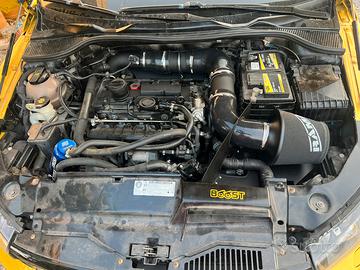 La macchina ha uno stage 2 con bobine R8 nuove, downpipe, scarico completo in acciaio inox, aspirazione diretta ramair oversize e recupero oli.