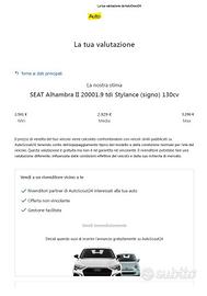 Seat Alhambra 1.9 TDI 130cv 7 Posti Stella. Gancio Traino Omologato a Libretto con Massa Complessiva Massima del Rimorchio di 2000 Kg Appartenuto a Proprietario Pensionato non Fumatore della Zona. Immatricolata a Maggio 2004 304300 km Certificati. Tagliando Effettuato a 297930Km Cinghia Distribuzione Sostituita a 248000Km Frizione Sostituita a 200000Km Regolarmente Revisionata. Disponibilità di Doppio Treno di Pneumatici Montati su Cerchio Invernali/Estivi. Accessoriato di Sensori di Parcheggio, Radio Alpine CD/USB/Bluetooth, Climatizzatore Automatico Bizona, Specchietti e Alzacristalli Anteriori Posteriori Elettrici/Ripiegabili, Vetri Oscurati, Airbag Conducente, Passeggero e Laterali, ABS, Volante e Sedile Regolabili, Servosterzo, Computer di Bordo, Fendinebbia e Chiusura Centralizzata con Telecomando. Completo di Doppie Chiavi. Leggeri Difetti di Carrozzeria Presenti. Garanzia di Conformità 12 Mesi. Per info 366.70.31.059 Se necessario siamo disponibili a venire a prendervi alla più vicina stazione ferroviaria o aeroportuale. Per eventuali informazioni non esitate a contattarci. Ricordiamo che al fine di evitare inconvenienti, eventuali inesattezze relative all'annuncio e per la massima trasparenza è consigliabile accertarsi della disponibilità dell'autovettura e della correttezza dei dati inseriti. MY CAR Compravendita Auto Multimarca DEPOSITO: Corso Nazioni Unite, 72 10073 Ciriè (TO) Cel. 366.70.31.059 E-mail: my_car@live.it Pec: my_car@pec.it P.IVA 09403540017 REA: TO-1062682