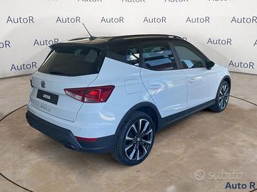 2 altoparlanti aggiuntivi - ABS - Airbag a tendina - Airbag guida, Airbag passeggero - Airbag laterali anteriori - Alette parasole anteriori con specchio e portatessere - Alzacristalli elettrici anteriori e posteriori - Ambient light console centrale e vano piedi - Ambient light su interno porta, console centrale e vano piedi - Appoggiatesta posteriori - Avvisatore acustico cinture di sicurezza anteriori - Barre al tetto di colore nero - Bocchetta d'areazione laterali con cornice Gold - Bocchette di aerazione in Argento Metallic - Cambio manuale - Cerchi in lega da 18" Nuclear Grey - Chiusura centralizzata senza telecomando - Cinture di sicurezza anteriori - Cinture di sicurezza posteriori a 3 punti - Climatizzatore manuale - Cruise control (Regolatore di velocità) - DAB - "Digital Audio Broadcasting" - Dash pad con modanature grigio ghiaccio - Disattivazione airbag passeggero - Doppio fondo nel vano bagagli - ESP, EBA - Fari anteriori Full LED - Fari fendinebbia con funzione cornering - Fari posteriori Full LED - Front assist - Gruppi ottici anteriori EcoLED - Hill Hold Control - Ingresso USB tipo C - Interni in tessuto - Kit riparazione pneumatici - Lane Assist (sistema di mantenimento della corsia) - Leva del cambio in pelle - Luci di lettura anteriori - Luci diurne a LED - Maniglie e specchietti in tinta carrozzeria - Maniglie portiere e retrovisori in tinta carrozzeria - Media System Color (schermo touch da 6.5" a colori/6 altoparlanti) - Media System Color (schermo touch da 8" a colori/4 altoparlanti) - Pretensionatore cinture anteriori - Ricircolo aria - SEAT Connect Standard (Safety & Service / Accesso Rem