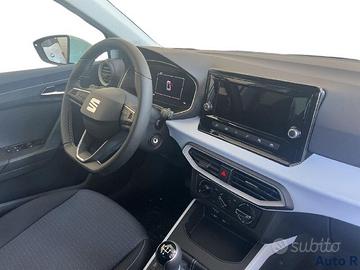 2 altoparlanti aggiuntivi - ABS - Airbag a tendina - Airbag guida, Airbag passeggero - Airbag laterali anteriori - Alette parasole anteriori con specchio e portatessere - Alzacristalli elettrici anteriori e posteriori - Ambient light console centrale e vano piedi - Ambient light su interno porta, console centrale e vano piedi - Appoggiatesta posteriori - Avvisatore acustico cinture di sicurezza anteriori - Barre al tetto di colore nero - Bocchetta d'areazione laterali con cornice Gold - Bocchette di aerazione in Argento Metallic - Cambio manuale - Cerchi in lega da 18" Nuclear Grey - Chiusura centralizzata senza telecomando - Cinture di sicurezza anteriori - Cinture di sicurezza posteriori a 3 punti - Climatizzatore manuale - Cruise control (Regolatore di velocità) - DAB - "Digital Audio Broadcasting" - Dash pad con modanature grigio ghiaccio - Disattivazione airbag passeggero - Doppio fondo nel vano bagagli - ESP, EBA - Fari anteriori Full LED - Fari fendinebbia con funzione cornering - Fari posteriori Full LED - Front assist - Gruppi ottici anteriori EcoLED - Hill Hold Control - Ingresso USB tipo C - Interni in tessuto - Kit riparazione pneumatici - Lane Assist (sistema di mantenimento della corsia) - Leva del cambio in pelle - Luci di lettura anteriori - Luci diurne a LED - Maniglie e specchietti in tinta carrozzeria - Maniglie portiere e retrovisori in tinta carrozzeria - Media System Color (schermo touch da 6.5" a colori/6 altoparlanti) - Media System Color (schermo touch da 8" a colori/4 altoparlanti) - Pretensionatore cinture anteriori - Ricircolo aria - SEAT Connect Standard (Safety & Service /
