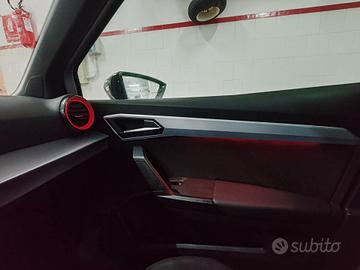 Ambient light su interno porta, console centrale e vano piedi, Luci Di Lettura Anteriori, Sedile lato guida regolabile manualmente in altezza, Sedile passeggero regolabile manualmente in altezza, Sedili anteriori sportivi FR in tessuto Sound, Volante sportivo in pelle col logo FR, Cielo abitacolo nero, Sedile posteriore abbattibile e frazionabile, Climatronic bi zona con filtro Aircare, Doppio fondo nel vano bagagli, Luce targa a LED, Tyre fit, Bocchette di aerazione laterali retroilluminate in Rosso, Dash pad centrale con modanature Grigio Silver, Alette parasole anteriori con specchio e portatessere, Chiusura centralizzata con telecomando + 2 chiavi richiudibili, Media System Color, 2 Altoparlanti aggiuntivi, Cerchi in lega da 17" Dynamic, SEAT Full Link wireless, Tetto e specchietti esterni in colore di contrasto, Maniglie in tinta carrozzeria, Specchietti esterni regolabili elettricamente, Specchietti esterni riscaldabili e ripiegabili elettricamente,