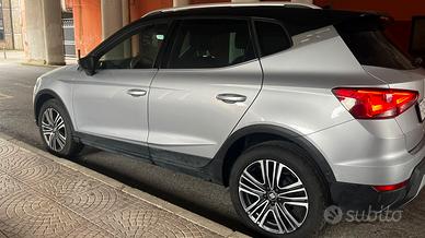 Seat Arona serie top: Xcellence con cambio automatico DSG a 7 marce, motorizzazione 1.6 Diesel 95cv, accensione e apertura/chiusura Keyless, sensori di parcheggio anteriori posteriori e laterali, park assist(parcheggia da sola), cerchi diamantati da 17, tagliandata quasi sempre da Del Priore (ufficiale Seat,Audi), tetto bicolore, barre cromate, fari Matrix Led automatici, Cruscotto digitale (Virtual Cockpit) con scheda sd aggiornata a mappe 2024, lettore cd nel vano cruscotto, luci ambient interne allo sportello, modalità drive/sport o manuale, Apple car play (anche wireless) e Ricarica wireless, rilevatore di stanchezza al conducente frenata assistita, cruise control adattivo, clima bi-zona, telecamera posteriore, vetri oscurati, ecc...mai lavata sotto le