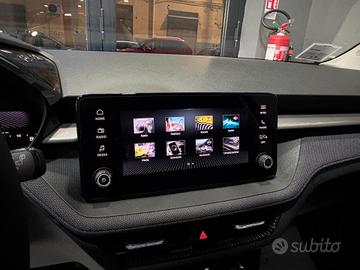 Accessori: 2 USB Type-C con connettività Apple ASR (Sistema antipattinamento) Assisted Drive Bracciolo centrale anteriore con vano portaoggetti Jumbo Box Calotte specchietti di colore Nero Tulipano Cambio automatico DSG a 7 marce, con modalità manuale tipo Tiptronic Carrozzeria Bi-colore con montante A e spoiler posteriore di colore Nero Tulipano Cerchi in lega Proxima Aero 6J x 16" - colore antracite con inserti aerodiamici neri Chiusura centralizzata con telecomando (2 chiavi ripiegabili) Climatizzatore automatico "Climatronic" Colore metallizzato Blu Race con tetto nero Comfort Pack Plus Cornice cromata attorno alla griglia del radiatore Cruise Control Digital Display 8" Driver Activity Assist - dispositivo di riconoscimento della stanchezza del conducente Easy Light Assist - Accensione automatica delle luci con funzione Coming/Living Home Easy Start (Keyless Easy Entry) chiusura centraliz. con funz. accens. e spegnim. motore senza chiave Family Pack Fari a LED Fari fendinebbia anteriori Fari fendinebbia posteriori Freni a disco anteriori e posteriori Front Assist con riconoscimento pedoni, monitoraggio radar antist. vettura e fren. autom. emerg.- Gruppo ottico posteriore Full LED con firma luminosa in tecnologia Crystal Lighting Kessy (Keyless Entry, Start and Exit System) entrata/uscita, accensione/spegnimento senza chiave Lane Assist-sistema di mantenimento del veicolo in corsia Lettering posteriore e nome modello nero (con Color Concept nero) Light & View Pacchetto Sound - Skoda Surround con 6 altoparlanti (4 davanti e 2 dietro) Parking Distance Control - sensori per il parcheggio anteriori con frenata di emergenza automatica Predisposizione per 2 seggiolini Isofix con TopTether sui sedili post. esterni e passeggero anter. Riconoscimento pedoni (monitoraggio radar spazio antistante la vettura) Ruota di scorta con cerchio in acciaio di dimensioni ridotte Sedile guidatore regolabile in altezza Sedile passeggero ante