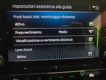 ABS, Adaptive Cruise Control, Airbag, Airbag laterali, Airbag Passeggero, Airbag testa, Alzacristalli elettrici, Android Auto, Apple CarPlay, Autoradio, Autoradio digitale, Bluetooth, Boardcomputer, Bracciolo, Cerchi in lega, Chiamata automatica per emergenze, Chiusura centralizzata, Chiusura centralizzata telecomandata, Climatizzatore, Climatizzatore automatico, 2 zone, Controllo automatico clima, Controllo elettronico della corsia, Controllo trazione, Controllo vocale, Cronologia tagliandi, Cruise Control, ESP, Fari LED, Fendinebbia, Filtro antiparticolato, Frenata d'emergenza assistita, Hill holder, Hotspot Wi-Fi, Immobilizzatore elettronico, Interni in pelle, Isofix, Kit antipanne, Kit fumatori, Limitatore di velocità, Luce d'ambiente, Luci diurne, Luci diurne LED, Monitoraggio pressione pneumatici, MP3, Park Distance Control, Pneumatici da neve, Riconoscimento dei segnali stradali, Schermo multifunzione interamente digitale, Sedile passeggero ribaltabile, Sedile posteriore sdoppiato, Sedili riscaldati, Sensore di pioggia, Sensori di parcheggio posteriori, Servosterzo, Sistema di avviso di distanza, Sistema di chiamata d'emergenza, Sistema di navigazione, Sistema di riconoscimento della stanchezza, Specchietti laterali elettrici, Touch screen, Trazione integrale, USB, Vetri oscurati, Vivavoce, Volante multifunzione, Volante riscaldabile