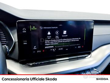 Adaptive Cruise Control - regolatore di velocita con regolazione automatica della distanza fino a 210 km/h, Argento Brillante, Climatronic - climatizzatore automatico a due zone con filtro combinato, sensore umidità e AirCare, Connettivita USB Type-C (x2) e Bluetooth con vivavoce e audiostreaming, Fari anteriori Full Led, Fendinebbia anteriori LED con funzione curvante, Keyless Easy Start - sistema di avviamento senza chiave, LANE ASSISTANT - sistema di mantenimento del veicolo in corsia, Navigatore satellitare Columbus con display touch 10quot;, Gesture Control, mappe Europa 3D aggiornabili gratuitamente, SSD 64GB, Assistente vocale Laura e Wi-Fi, Parking Distance Control - sensori per il parcheggio anteriori con frenata di emergenza automatica, Parking Distance Control - Sensori per il parcheggio posteriori con frenata dapos;emergenza automat, Predisposizione per seggiolino Isofix con TopTether sui sedili posteriori esterni e passeggero anteriore, Skoda Connect, Virtual Cockpit - cruscotto digitale con display a colori da 10,2quot;, Volante multifunzione in pelle a due razze con comandi radio, telefono e paddles, Wireless SmartLink - funzionalità Wi-Fi per Apple CarPlay e Android Auto per smartphone compatibili