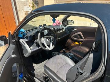 Vendo smart 451 CDI pulse anno 2013,800 di cilindrata diesel. Volante in pelle a 3 razze con palette, fari fendinebbia modello brabus cambiate da me, cerchi in lega sportivi, contagiri/orologio sulla plancia, luci interne a led anche sul cruscotto, fari a led, tettuccio panoramico con tendina, cambio automatico/sequenziale, sedili pelle/tessuto. Tagliandata il come da foto nel libretto. Lavori fatti per usura sostituzione supporto motore, cambio gomme, revisione e tagliandi appena fatti Vendo per passaggio di macchina più grande per necessità. Macchina sempre tenuta in modo perfetto.